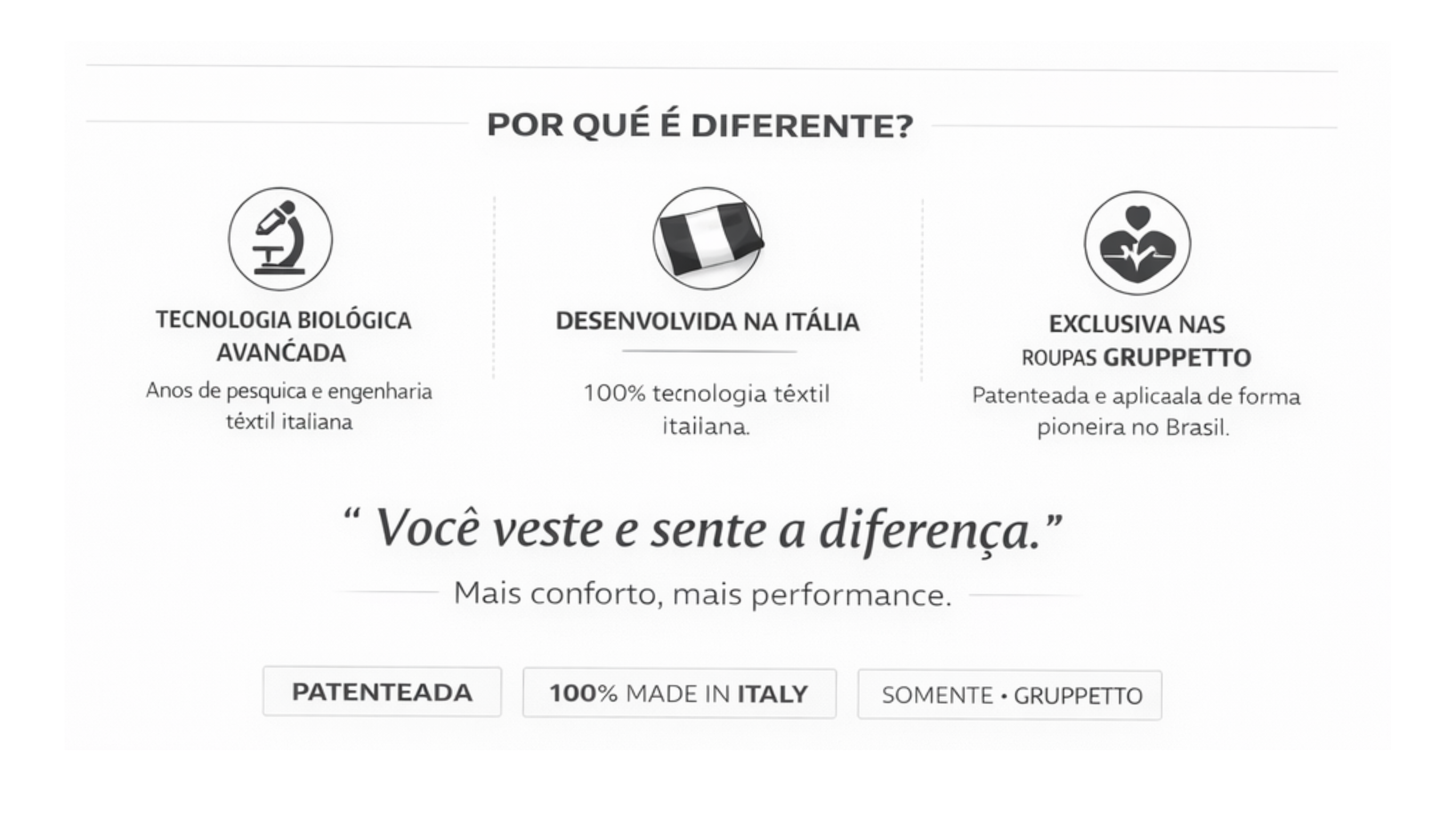OMSTRIP é uma tecnologia 100% italiana aplicada de forma pioneira nas roupas fitness da Gruppetto.